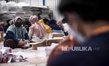 Sejumlah pekerja melakukan pelipatan dan penyortiran surat suara di Gudang Logistik KPU Kabupaten Bandung, Kampung Sawah, Soreang, Kabupaten Bandung, Ahad (15/11). KPU Kabupaten Bandung mulai melakukan proses pelipatan dan penyortiran surat suara sebanyak 2.420.699 lembar dengan melibatkan 400 tenaga kerja lepas untuk pelaksanaan Pilkada Kabupaten Bandung 2020 pada Desember mendatang. (FOTO : ABDAN SYAKURA/REPUBLIKA)
