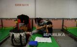 Penumpang memasangkan masekr anakanya ketika berada di kapal untuk menunggu keberangkatan KM Dorolonda di Pelabuhan Tanjung Priok, Jakarta, Ahad (15/11). PT Pelayaran Nasional Indonesia (Pelni) mematuhi skenario protokol kesehatan Covid-19 pada kegiatan operasional yaitu dengan mewajibkan penumpang menggunakan masker, menerapkan jaga jarak, pembatasan penumpang maksimal 50 persen dari kapasitas dan Penggunaan APD bagi kru kapal.Prayogi/Republika. (FOTO : Prayogi/Republika)