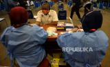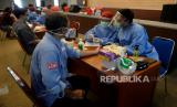 Sejumlah anggota Panitia Pemungutan Suara (PPS) dan panitia pemilihan kecamatan (PPK) mendaftar saat mengikuti rapid test di Kantor Wali Kota, Depok, Jawa Barat, Senin (16/11). Sebanyak 294 petugas anggota PPS dan PPK se-Kota Depok mengikuti tes cepat COVID-19 guna memastikan kondisi sehat dan siap bertugas pelaksanaan Pemilihan Kepala Daerah (Pilkada) Kota Depok pada 9 Desember 2020.Prayogi/Republika. (FOTO : Prayogi/Republika)