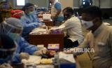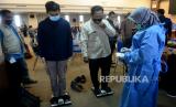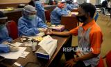 Petugas kesehatan mengambil data kesehatan anggota Panitia Pemungutan Suara (PPS) dan panitia pemilihan kecamatan (PPK) saat mengikuti rapid test di Kantor Wali Kota, Depok, Jawa Barat, Senin (16/11). Sebanyak 294 petugas anggota PPS dan PPK se-Kota Depok mengikuti tes cepat COVID-19 guna memastikan kondisi sehat dan siap bertugas pelaksanaan Pemilihan Kepala Daerah (Pilkada) Kota Depok pada 9 Desember 2020.Prayogi/Republika. (FOTO : Prayogi/Republika)