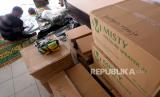 Perlengkapan APD KPPS untuk Pilkada serentak siap didistribusikan di KPUD Bantul, Yogyakarta, Selasa (17/11). Perlengkapan alat pelindung diri menjadi salah satu logistik pada Pilkada serentak 2020. Hal ini mengingat kondisi pandemi Covid-19 yang belum berakhir. Masker, pelindung wajah, sarung tangan, penyemprot, dan hand sanitizer menjadi logistik tambahan bagi petugas. (FOTO : Wihdan Hidayat / Republika)