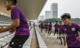 Pesepak bola Timnas U-19 berlatih di Stadion Madya, Kompleks Gelora Bung Karno Senayan, Jakarta, Selasa (17/11/2020). Sebanyak 38 pemain Timnas Indonesia U-19 menjalani pemusatan latihan di Stadion Madya, Jakarta pada 16 hingga 23 November 2020. (FOTO : ANTARA/Galih Pradipta)