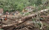 REPUBLIKA.CO.ID, BANYUMAS -- Selain banjir, bencana longsor juga terjadi di sejumlah wilayah Kabupaten Banyumas, Selasa (17/11). Di berbagai lokasi dataran tinggi, longsor terjadi di sejumlah tempat. Bahkan di wilayah Kecamatan Sumpiuh, longsor menyebabkan tiga orang meninggal karena rumahnya tertimpa longsor.