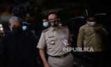 Gubernur DKI Jakarta Anies Baswedan usai memenuhi undangan klarifikasi di Mapolda Metro Jaya, Jakarta, Selasa (17/11). Gubernur DKI Jakarta Anies Baswedan memenuhi panggilan pihak kepolisian untuk dimintai klarifikasi terkait kerumunan massa di rumah Habib Rizieq Shihab (HRS) di Petamburan, Jakarta Pusat, pada masa pembatasan sosial berskala besar (PSBB) transisi. Prayogi/Republika. (FOTO : Prayogi/Republika)