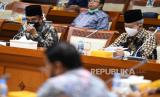 REPUBLIKA.CO.ID, JAKARTA -- Ketua Komisi VIII DPR Yandri Susanto (kiri) berdialog dengan Menteri Agama Fachrul Razi saat rapat kerja di Kompleks Parlemen Senayan, Jakarta, Rabu (18/11/2020).