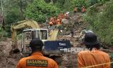 REPUBLIKA.CO.ID, BANYUMAS -- Sejumlah petugas melakukan proses pencarian korban yang tertimbun tanah longsor, di Desa Banjarpanepen, Sumpiuh, Banyumas, Jateng, Rabu (18/11/2020). Hingga hari kedua pencarian pada Rabu (18/11).