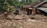 Ekskavator digunakan untuk melakukan proses pencarian korban yang tertimbun tanah longsor di Desa Banjarpanepen, Sumpiuh, Banyumas, Jateng, Rabu (18/11/2020). Hingga hari kedua pencarian pada Rabu (18/11). Tim SAR gabungan telah menemukan tiga jenazah korban longsor dari empat korban yang tertimbun, dan proses pencarian dilanjutkan dengan menggunakan ekskavator. (FOTO : ANTARA/Idhad Zakaria)