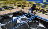 REPUBLIKA.CO.ID, JAKARTA -- Petugas Bidang Air Beku, Air Bersih, dan Air Limbah Dinas Sumber Daya Air Provinsi DKI Jakarta memeriksa air yang telah diproses di pengolahan air limbah di Jagakarsa, Jakarta, Rabu (18/11/2020).