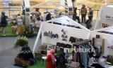 Pengunjung melihat-lihat produk yang ditampilkan pada pameran In Store Promotion di Grand Atrium Mall Kota Kasablanka, Jakarta, Rabu (18/11). Kemendag dan Asosiasi Pengelola Pusat Belanja Indonesia (APPBI) berkolaborasi menyelenggarakan kegiatan In Store Promotion yang bertujuan untuk mendorong pelaku UMKM agar tetap eksis mempromosikan produknya, sekaligus sebagai upaya pemulihan ekonomi. (FOTO : Prayogi/Republika)