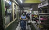 Seorang warga memakai masker saat berjualan di Rusun Bidara Cina, Jatinegara, Jakarta, Kamis (19/11). Kondisi rusun yang padat akan penduduk membuat para penghuni harus menerapkan protokol kesehatan secara ketat untuk mencegah munculnya klaster Covid-19 di lingkungan tersebut. Republika/Putra M. Akbar (FOTO : Republika/Putra M. Akbar)