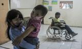 Anak-anak memakai masker saat bermain di Rusun Bidara Cina, Jatinegara, Jakarta, Kamis (19/11). Kondisi rusun yang padat akan penduduk membuat para penghuni harus menerapkan protokol kesehatan secara ketat untuk mencegah munculnya klaster Covid-19 di lingkungan tersebut. Republika/Putra M. Akbar (FOTO : Republika/Putra M. Akbar)