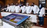 Menteri KUKM RI Teten Masduki (ketiga kanan) meluncurkan Gerakan Inovasi dan Transformasi Digital Koperasi dan logo baru LPDB-KUMKM saat kunjungan kerja di Hotel Aryaduta, Kota Bandung, Kamis (19/11). Dalam kunjungan kerja tersebut Menteri KUKM RI Teten Masduki berkesempatan untuk mencanangkan Gerakan Inovasi dan Transformasi Digital Koperasi dan meluncurkan logo baru LPDB-KUMKM. (FOTO : ABDAN SYAKURA/REPUBLIKA)