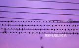 Burung Layang-layang Api bertengger pada kabel listrik di kawasan Gondomanan, Yogyakarta, Kamis (19/11). Setiap senja Burung Layang-layang Api memadati kawasan perempatan Gondomanan. Mulai November burung layang-layang api mulai berada di Yogyakarta dan akan kembali pada Februari. Yogyakarta menjadi tujuan akhir migrasi sebelum kembali ke Korea, Jepang, dan Himalaya. (FOTO : Wihdan Hidayat / Republika)