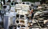 REPUBLIKA.CO.ID, JAKARTA -- Pekerja memilih barang bekas di tempat pengepulan sampah elektronik di Jakarta, Kamis (19/11/2020). Dinas Lingkungan Hidup (DLH) DKI Jakarta mengatakan jumlah limbah elektronik pada periode Februari sampai dengan Oktober 2020 mencapai 22 ton atau sebanyak 22.683 kilogram.