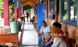 Pengungsi lansia beraktivitas di Pengungsian SD Muhammadiyah Cepitsari, Cangkringan, Sleman, Yogyakarta, Jumat (20/11). SD Muhammadiyah Cepitsari sudah mulai digunakan untuk mengungsi warga Kalitengah Lor. Selain itu, satu kelas khusus digunakan sebagai bilik karantina pasien Covid-19. (FOTO : Wihdan Hidayat / Republika)