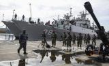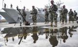 REPUBLIKA.CO.ID, JAKARTA -- Sejumlah prajurit TNI AL mengikuti Gelar Pasukan Latihan Operasi Dukungan Tembakan tahun 2020 Koarmada I di Dermaga JICT II, Tanjung Priok, Jakarta, Jumat (20/11).