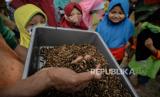 REPUBLIKA.CO.ID, JAKARTA -- Petugas mengedukasi anak-anak budidaya maggot di area edukasi pengolahan sampah Padepokan Restu Bumi, Ciracas, Jakarta, Sabtu (21/11).
