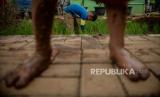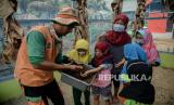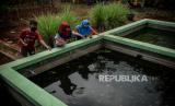 Anak-anak melakukan praktik berternak di area edukasi pengolahan sampah Padepokan Restu Bumi, Ciracas, Jakarta, Sabtu (21/11). Dinas Lingkungan Hidup dan Kehutanan (LHK) Jakarta Timur mengadakan program edukasi urban farming seperti penanaman padi, budidaya maggot, berkebun dan berternak. Kegiatan itu juga memperingati Hari Pohon Sedunia yang jatuh tiap tanggal 21 November. (FOTO : Republika/Thoudy Badai)