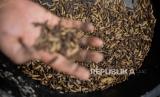 Petugas memperlihatkam maggot di area edukasi pengolahan sampah Padepokan Restu Bumi, Ciracas, Jakarta, Sabtu (21/11). Dinas Lingkungan Hidup dan Kehutanan (LHK) Jakarta Timur mengadakan program edukasi urban farming seperti penanaman padi, budidaya maggot, berkebun dan berternak. Kegiatan itu juga memperingati Hari Pohon Sedunia yang jatuh tiap tanggal 21 November. Republika/Thoudy Badai (FOTO : Republika/Thoudy Badai)