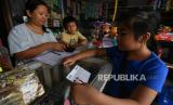Seorang pelajar menabung melalui salah satu warung yang menyediakan layanan setor tunai di Palu, Sulawesi Tengah, Minggu (22/11/2020). Otoritas Jasa Keuangan (OJK) menargetkan tingkat inklusi keuangan mencapai 90 persen pada akhir tahun 2024 salah satunya dengan mendorong pembukaan rekening pelajar. Selain itu pembukaan rekening khusus pelajar tersebut juga diharapkan mendorong budaya menabung sejak dini. (FOTO : Mohamad Hamzah/ANTARA)
