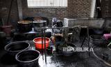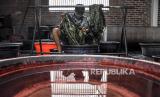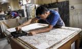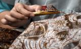 Pekerja menyelesaikan pembuatan kain batik di Rumah Batik Komar, Jalan Cigadung Raya, Cigadung, Kota Bandung, Selasa (24/11). Pemerintah Kota Bandung melalui Dinas Kebudayaan dan Pariwisata Kota Bandung meluncurkan Kampung Wisata Kreatif Cigadung yang terdiri dari wisata kuliner, kesenian, budaya, kerajinan dan fesyen sebagai ajang promosi guna meningkatkan kunjungan wisatawan ke Kota Bandung sekaligus upaya pemulihan ekonomi akibat pandemi Covid-19. (FOTO : ABDAN SYAKURA/REPUBLIKA)