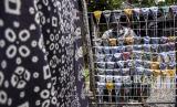 Pekerja menjemur masker batik di Rumah Batik Komar, Jalan Cigadung Raya, Cigadung, Kota Bandung, Selasa (24/11). Pemerintah Kota Bandung melalui Dinas Kebudayaan dan Pariwisata Kota Bandung meluncurkan Kampung Wisata Kreatif Cigadung yang terdiri dari wisata kuliner, kesenian, budaya, kerajinan dan fesyen sebagai ajang promosi guna meningkatkan kunjungan wisatawan ke Kota Bandung sekaligus upaya pemulihan ekonomi akibat pandemi Covid-19. (FOTO : ABDAN SYAKURA/REPUBLIKA)