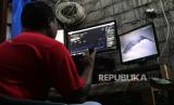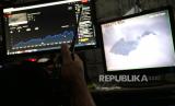 Relawan mengamati aktivitas Gunung Merapi di Balerante, Klaten, Jawa Tengah, Selasa (24/11). Warga rentan lansia dan balita sudah berada di barak pengungsian. Desa Balerante merupakan titik pemantauan Gunung Merapi. (FOTO : Wihdan Hidayat / Republika)