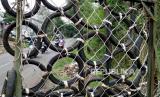 Sebuah jaring penyelamat terbuat dari tali dan ban bekas sepeda motor dipasang warga di salah satu turunan Jalan Punclut, Kecamatan Lembang, Kabupaten Bandung Barat, Selasa (24/11). Jaring penyelamat tersebut dipasang sebagai upaya mencegah bertambahnya korban akibat rem blong di turunan jalan kawasan Punclut arah Kota Bandung. (FOTO : Edi Yusuf/Republika)