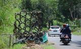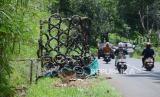 Sebuah jaring penyelamat terbuat dari tali dan ban bekas sepeda motor dipasang warga di salah satu turunan Jalan Punclut, Kecamatan Lembang, Kabupaten Bandung Barat, Selasa (24/11). Jaring penyelamat tersebut dipasang sebagai upaya mencegah bertambahnya korban akibat rem blong di turunan jalan kawasan Punclut arah Kota Bandung. (FOTO : Republika/Edi Yusuf)