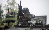 Prajurit TNI AD berada diatas Kendaraan Tempur (Ranpur) jenis tank M113 saat mengikuti gladi bersih puncak Latihan Antar Kecabangan TNI AD Kartika Yudha Tahun 2020 di Pusat Latihan Tempur (Puslatpur) TNI AD, Baturaja Timur, Ogan Komering Ulu (OKU), Sumatera Selatan, Selasa (24/11/2020). Gladi bersih Latihan Antar Kecabangan TNI AD Kartika Yudha Tahun 2020 tersebut bertujuan untuk mematangkan pergerakan prajurit saat mengikuti puncak latihan yang akan dihadiri Kepala Staf Angkatan Darat (KSAD) Jenderal TNI Andika Perkasa, Kamis (26/11). ANTARA FOTO/Nova Wahyudi/foc. (FOTO : ANTARA FOTO/NOVA WAHYUDI)