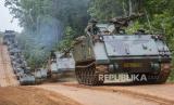 Sejumlah Kendaraan Tempur (Ranpur) jenis Tank M113 mengikuti gladi bersih puncak Latihan Antar Kecabangan TNI AD Kartika Yudha Tahun 2020 di Pusat Latihan Tempur (Puslatpur) TNI AD, Baturaja Timur, Ogan Komering Ulu (OKU), Sumatera Selatan, Selasa (24/11/2020). Gladi bersih Latihan Antar Kecabangan TNI AD Kartika Yudha Tahun 2020 tersebut bertujuan untuk mematangkan pergerakan prajurit saat mengikuti puncak latihan yang akan dihadiri Kepala Staf Angkatan Darat (KSAD) Jenderal TNI Andika Perkasa, Kamis (26/11). ANTARA FOTO/Nova Wahyudi/foc. (FOTO : ANTARA FOTO/NOVA WAHYUDI)
