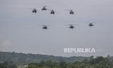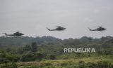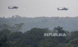 Helikopter Apache dan Bell 412 TNI AD membentuk formasi saat gladi bersih puncak Latihan Antar Kecabangan TNI AD Kartika Yudha Tahun 2020 di Pusat Latihan Tempur (Puslatpur) TNI AD, Baturaja Timur, Ogan Komering Ulu (OKU), Sumatera Selatan, Selasa (24/11/2020). Gladi bersih Latihan Antar Kecabangan TNI AD Kartika Yudha Tahun 2020 tersebut bertujuan untuk mematangkan pergerakan prajurit saat mengikuti puncak latihan yang akan dihadiri Kepala Staf Angkatan Darat (KSAD) Jenderal TNI Andika Perkasa, Kamis (26/11). ANTARA FOTO/Nova Wahyudi/foc. (FOTO : ANTARA FOTO/NOVA WAHYUDI)
