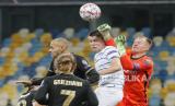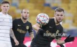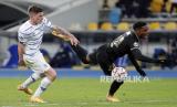 Benjamin Verbic (kiri) mengganggu laju Junior Firpo (kanan) pada laga Liga Champions Grup G di Kiev, Ukraine, Rabu (25/11) dini hari. (FOTO : EPA-EFE/SERGEY DOLZHENKO)