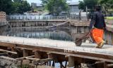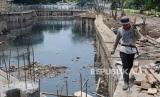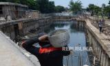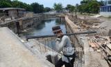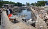 Aktivitas pekerja menyelesaikan kolam retensi di kawasan Pasar Gedebage, Jalan Soekarno Hatta, Kota Bandung, Rabu (25/11). Proyek yang dibangun Pemkot Bandung ini bisa menampung 5,8 juta liter air hujan. Keberadaan kolam retensi ini diharapkan bisa menjadi solusi penanganan banjir di wilayah tersebut. (FOTO : Edi Yusuf/Republika)