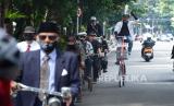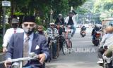 Pesepeda yang tergabung dalam Paguyuban Sapedah Baheula Bandoeng (PSBB), melewati kawasan Gedung Sate, saat berkeliling Kota Bandung, dalam rangka menyambut Hari Guru Nasional, Rabu (25/11). Selain itu, mereka pun mengkampanyeukan lawan Covid salah satunya dengan bersepeda untuk meningkatkan imunitas tubuh. (FOTO : Edi Yusuf/Republika)