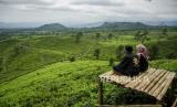 Waga menikmati pemandangan kebun teh di Bukit Sangtiong, Ciater, Kabupaten Subang, Jawa Barat, Rabu (25/11/2020). Pemerintah Jawa Barat bersama PTPN VIII akan mengembangkan proyek kawasan Ciater Agrotourism sebagai bagian proyek investasi pendukung kawasan Rebana di Jawa Barat yang mengandalkan potensi ekowisata seperti hamparan kebun teh, pemandian air panas, paralayang dan wisata air terjun. (FOTO : NOVRIAN ARBI/ANTARA FOTO)