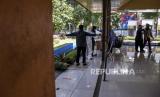 Petugas kesehatan menyemprotkan cairan disinfektan kepada petugas KPPS sebelum mengikuti tes cepat (rapid test) Covid-19 di Kantor Kecamatan Soreang, Soreang, Kabupaten Bandung, Kamis (26/11). Komisi Pemilihan Umum (KPU) Kabupaten Bandung melakukan tes cepat terhadap 61.866 petugas KPPS dan petugas Pengamanan Tempat Pemungutan Suara (PAM TPS) guna mengantisipasi penyebaran Covid-19 saat pemungutan suara Pilkada Kabupaten Bandung pada Desember mendatang. (FOTO : ABDAN SYAKURA/REPUBLIKA)