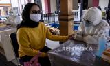 REPUBLIKA.CO.ID, BANDUNG -- Petugas Kelompok Penyelenggara Pemungutan Suara (KPPS) terus menjalanlan tes cepat (rapid test) Covid-19 di Kantor Kecamatan Soreang, Soreang, Kabupaten Bandung, Kamis (26/11).
