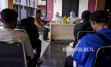 Petugas Kelompok Penyelenggara Pemungutan Suara (KPPS) mengikuti tes cepat (rapid test) Covid-19 di Kantor Kecamatan Soreang, Soreang, Kabupaten Bandung, Kamis (26/11). Komisi Pemilihan Umum (KPU) Kabupaten Bandung melakukan tes cepat terhadap 61.866 petugas KPPS dan petugas Pengamanan Tempat Pemungutan Suara (PAM TPS) guna mengantisipasi penyebaran Covid-19 saat pemungutan suara Pilkada Kabupaten Bandung pada Desember mendatang. (FOTO : ABDAN SYAKURA/REPUBLIKA)