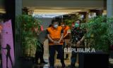 Staf khusus Menteri Edhy Prabowo, Andreau Pribadi Misata berjalan usai konferensi pers terkait penahanan tersangka di Geduung KPK, Jakarta, Kamis (26/11). Staf khusus Menteri Edhy Prabowo, Andreau Pribadai Misata dan pihak swasta Amiril Mukminin menyerahkan diri ke KPK setelah lima tersangka sebelumnya diantaranya Menteri Kelautan dan Perikanan Edhy Prabowo ditahan atas kasus dugaan tindak pidana korupsi ekspor benih lobster. (FOTO : Republika/Thoudy Badai)