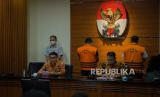 Deputi Penindakan KPK Karyoto (kiri) dan Juru Bicara KPK Ali Fikri (kanan) memberikan keterangan pers terkait penahanan tersangka di Geduung KPK, Jakarta, Kamis (26/11). Staf khusus Menteri Edhy Prabowo, Andreau Pribadai Misata dan pihak swasta Amiril Mukminin menyerahkan diri ke KPK setelah lima tersangka sebelumnya diantaranya Menteri Kelautan dan Perikanan Edhy Prabowo ditahan atas kasus dugaan tindak pidana korupsi ekspor benih lobster. Republika/Thoudy Badai (FOTO : Republika/Thoudy Badai)