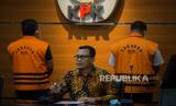 Juru Bicara KPK Ali Fikri memberikan keterangan pers terkait penahanan tersangka di Geduung KPK, Jakarta, Kamis (26/11). Staf khusus Menteri Edhy Prabowo, Andreau Pribadai Misata dan pihak swasta Amiril Mukminin menyerahkan diri ke KPK setelah lima tersangka sebelumnya diantaranya Menteri Kelautan dan Perikanan Edhy Prabowo ditahan atas kasus dugaan tindak pidana korupsi ekspor benih lobster. Republika/Thoudy Badai (FOTO : Republika/Thoudy Badai)