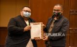 Pemimpin Redaksi Republika Irfan Junaidi (kanan) berfoto bersama Ketua Bidang Kerjasama dan Sinergi Forum Zakat Angga Nugraha (kiri) usai menandatangani nota kesepahaman pada acara focus grup discussion (FGD) Forum Zakat di Hotel Aryaduta, Jalan Sumatera, Kota Bandung, Jumat (27/11). Focus grup discussion tersebut mengangkat tema Tantangan dan Peluang Kolaborasi dan Kerja Sama Tiga Tahun Mendatang. (FOTO : ABDAN SYAKURA/REPUBLIKA)