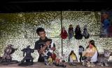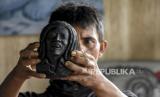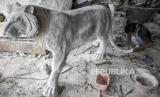Perajin menyelesaikan pembuatan patung di Galeri Won Art Kreasi, Jalan Dago Giri, Lembang, Kabupaten Bandung Barat, Jumat (27/11). Berbagai jenis patung berbahan fiberglass, tembaga, kuningan dan styrofoam yang dijual dengan harga Rp200 ribu hingga ratusan juta tergantung ukuran dan model tersebut telah menembus pasar ekspor di Skotlandia, Prancis, Malaysia serta dijual ke berbagai kota di Indonesia. (FOTO : ABDAN SYAKURA/REPUBLIKA)