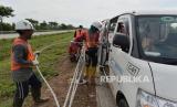 REPUBLIKA.CO.ID, CIREBON -- ASTRA Tol Cipali selaku pengelola ruas jalan Tol Cikopo-Palimanan (Cipali), memasang pembatas jalan dari sling baja atau wire rope di ruas tol Cipali, Cirebon, Kamis (26/11). Pemasangan wire rope ini untuk menambah keamanan bagi pengguna tol Cipali. Saat ini wire rope telah terpasang sepanjang 44 KM, dan ditargetkan pada tahun 2021 mendatang akan terpasang di ruas tol Cipali sepanjang 106 KM. Alat ini diklaim mampu menahan beban kendaraan sampai dengan 80 ton, sehingga mobil tidak berpindah jalur saat alami kecelakaan. Selain pemasangan wire rope, ASTRA Tol Cipali juga membuat speed reducer berupa aspal yang dicat dengan warna putih berbentuk panah. "Dengan adanya speed reducer ini, pengendara diharapkan akan mengurangi kecepatan kendaraannya," kata Direktur Operasi ASTRA Tol Cipali Agung Prasetyo. Speed reducer dibuat sejauh 1 kilometer, dengan variasi 500 meter di jalur kiri dan 500 meter di jalur kanan.