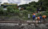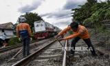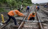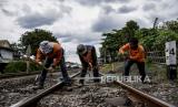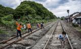 REPUBLIKA.CO.ID, BANDUNG -- Petugas melakukan perawatan jalur rel Kereta Api di daerah Laswi, Batununggal, Kota Bandung, Ahad (29/11).