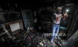 Warga korban kebakaran pemukiman saat mencari sisa-sisa barang berharga di kawasan Petamburan II, Jakarta, Senin (30/11). Kebakaran yang menghanguskan 12 bangunan pada Ahad (29/11) malam itu membuat seratus warga terpaksa mengungsi karena kehilangan tempat tinggal. Republika/Putra M. Akbar (FOTO : Republika/Putra M. Akbar)