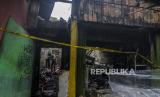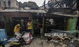 Suasana pemukiman warga yang telah hangus terbakar di kawasan Petamburan II, Jakarta, Senin (30/11). Kebakaran yang menghanguskan 12 bangunan pada Ahad (29/11) malam itu membuat seratus warga terpaksa mengungsi karena kehilangan tempat tinggal. (FOTO : Republika/Putra M. Akbar)