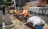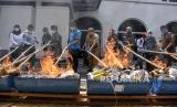 REPUBLIKA.CO.ID, BANDUNG -- Wakil Wali Kota Bandung Yana Mulyana (kelima kanan) bersama Kepala Kejaksaan Negeri Kota Bandung M Iwa Suwia Pribawa (keempat kiri) memusnahkan berbagai barang bukti tindak pidana umum dengan cara dibakar di Kantor Kejaksaan Negeri Kota Bandung, Jalan Jakarta, Kota Bandung, Selasa (1/12).