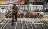 Petugas memusnahkan berbagai macam barang bukti tindak pidana umum di Kantor Kejaksaan Negeri Kota Bandung, Jalan Jakarta, Kota Bandung, Selasa (1/12). Kejaksaan Negeri Kota Bandung bersama instansi terkait memusnahkan berbagai barang bukti tindak pidana umum hasil penindakan sepanjang periode Mei 2020 - Oktober 2020 berupa 3.461,86 gram ganja, 96,8879 gram tembakau sintetis, 616,9046 gram sabu, 1.362 tablet psikotropika berbagai merk serta barang bukti alat kejahatan seperti senjata api dan senjata tajam. Foto: Abdan Syakura/Republika (FOTO : ABDAN SYAKURA/REPUBLIKA)